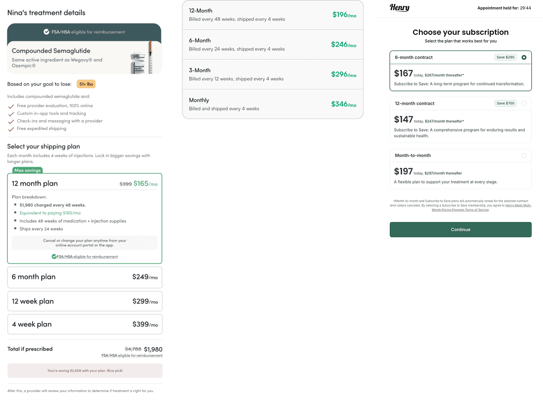 Several competitors already offered extended plans, so I quickly analyzed how other brands were presenting this offering, including: Henry Meds, Hims/Hers, and Eden.